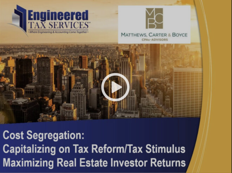 A 45-minute webinar that goes into detail on cost segregation, new and old bonus depreciation rules, repairs and maintenance, partial asset disposition, and more.
